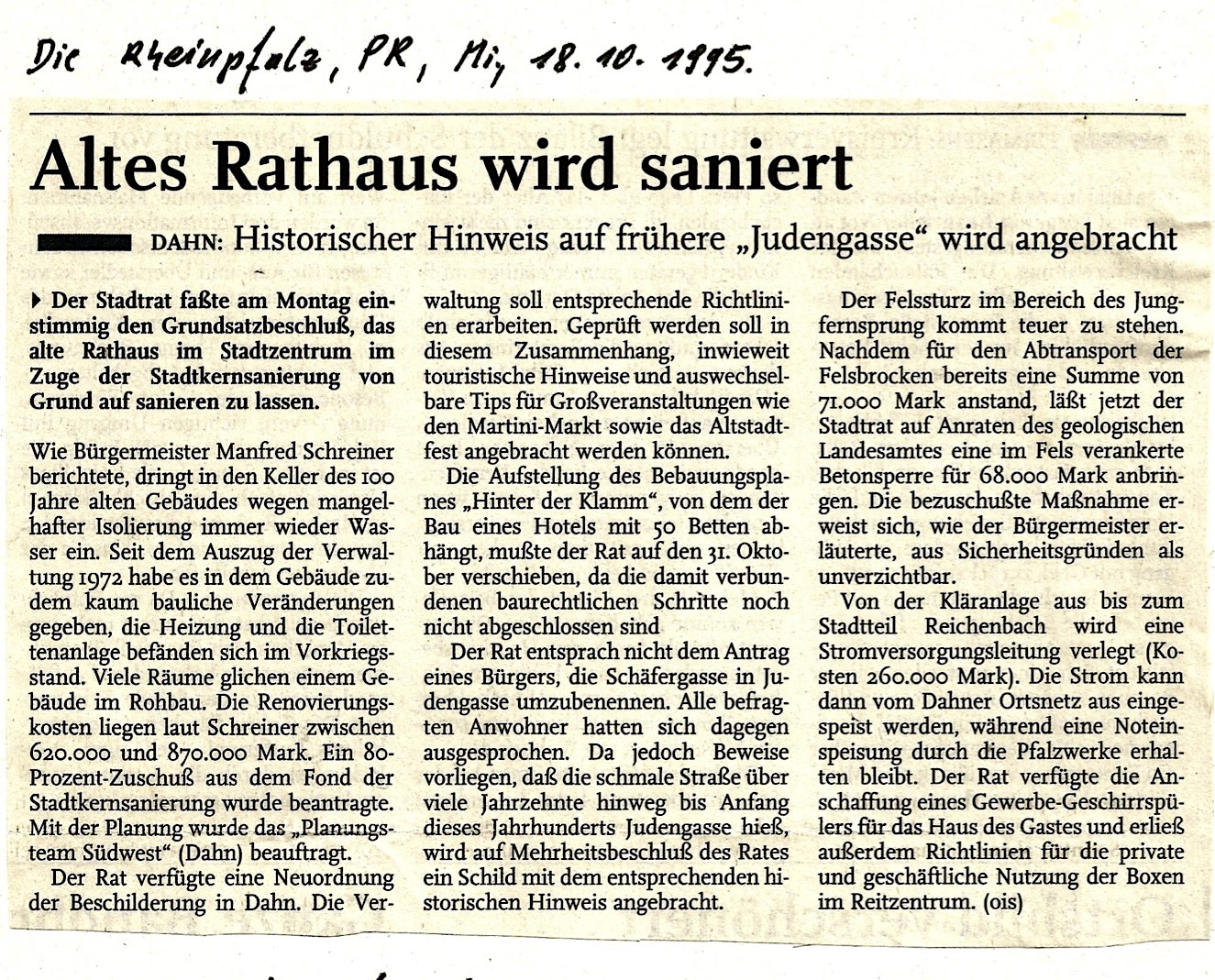 Der Artikel wurde am 18.10.1995 veröffentlicht.