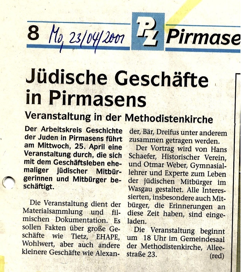 © Arbeitskreis Judentum im Wasgau, Otmar Weber, Schillerstrasse 10b, 66994 Dahn
