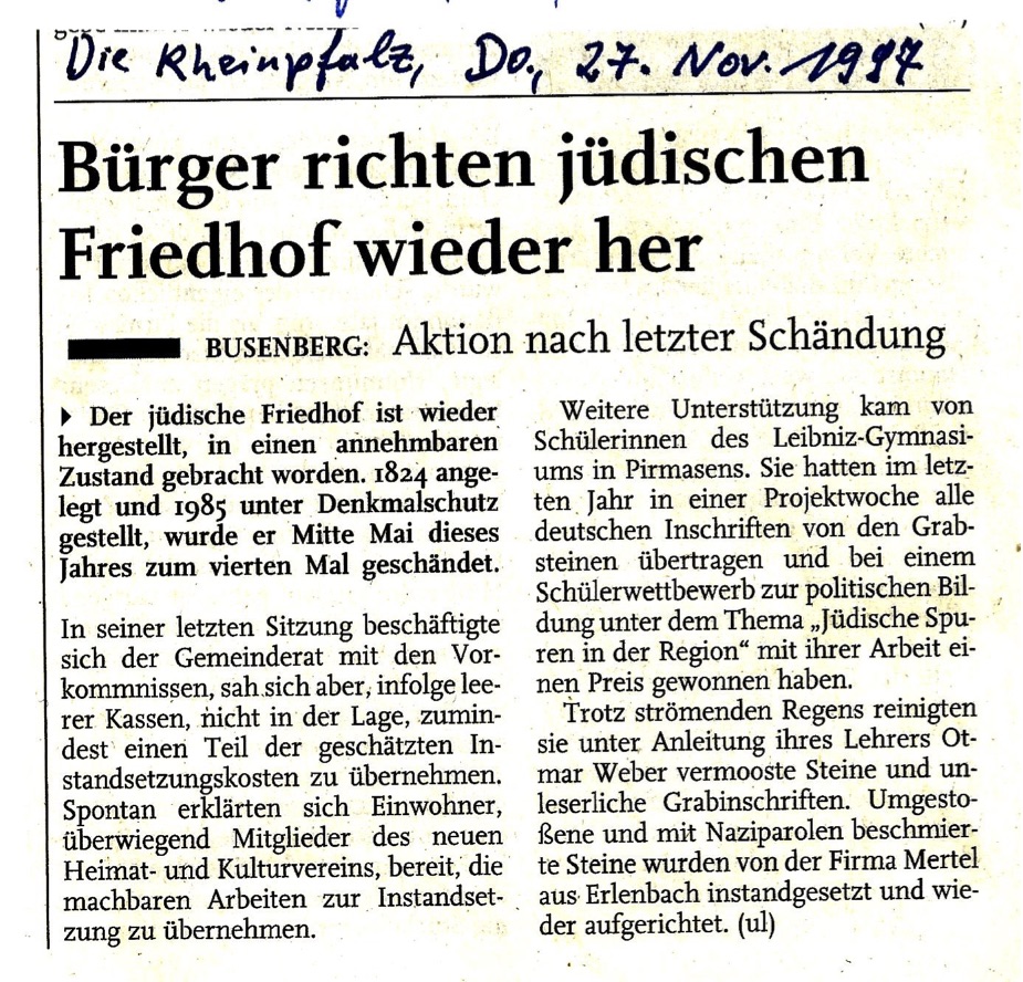 © Arbeitskreis Judentum im Wasgau, Otmar Weber, Schillerstrasse 10b, 66994 Dahn